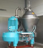The separator features an open inlet, allowing for easy feeding of the liquid to be clarified. The outlet for the light phase is equipped with a fixed skimming device, ensuring precise discharge of the clarified liquid. The outlet for solids is open.